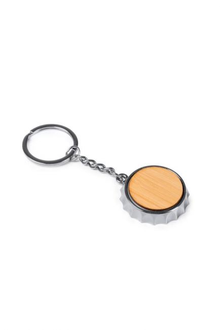 Avaimenperä pullonavaaja metallilevykuviolla. Kromiviimeistely ja bambupinta. // [11cm/4Ø] // D(2), L1