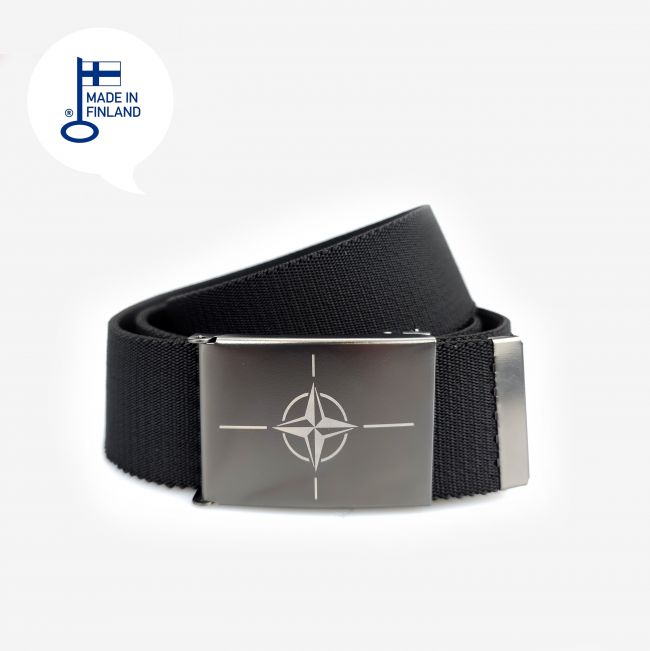 Joustava canvasvyö 40mm musta, Nato-soljella, 120 cm