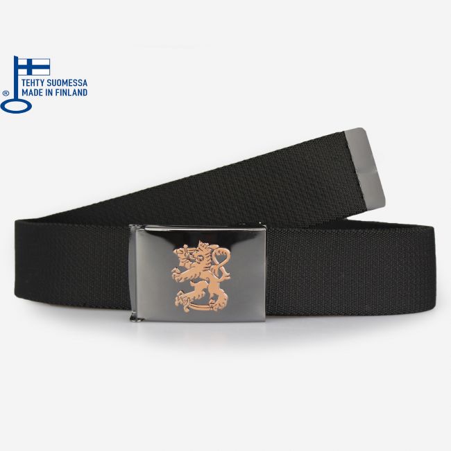 Joustava canvasvyö tumma leijona solki 120 cm