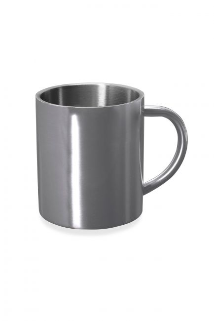 Metallinen muki, jossa on kaksinkertainen seinämä ja värillinen ulkokuori. Tilavuus 290 ml. Pakkaus valkoisessa rasiassa.