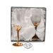 Upeat valkovuokkokuvioiset valkoviinilasit kauniissa silkkivuoratussa lahjapakkauksessa. Lasin jalka on tinaa, joka on kullattu ja epox-maalattu. Jalan kuvio näkyy kauniisti myös lasin sisäpuolella. Lasit ovat suomalaista designia!